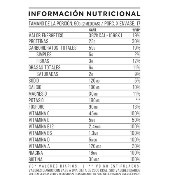 Su fórmula avanzada está potenciada con óxido nítrico, e incluye proteína de suero ultraconcentrada, fibra y vitaminas esenciales.